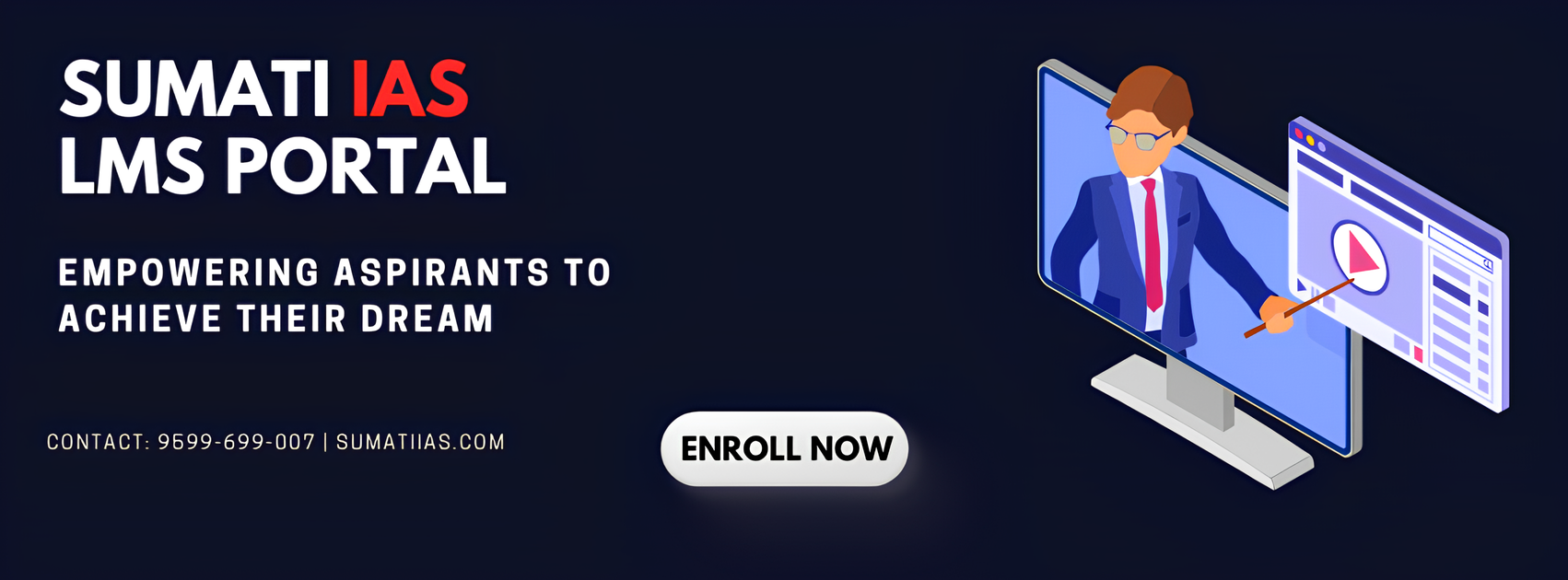"Embark on your UPSC journey with SumatiIAS LMS! Our platform is designed to be your companion throughout your preparation, providing you with a wealth of resources, interactive lessons, and personalized learning paths. With the support of experienced educators and a community of fellow aspirants, you'll never feel alone in your journey. So, come join us at SumatiIAS LMS and let's conquer the UPSC exams together!"